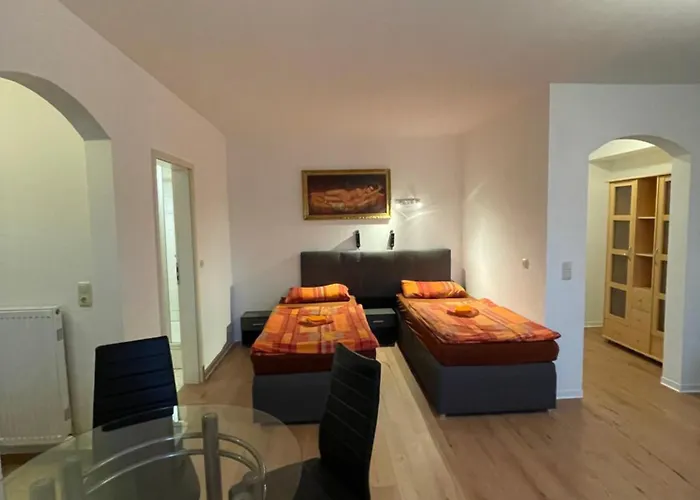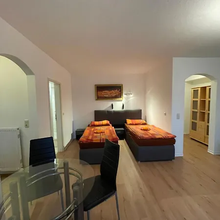 Gasten die in dit appartement verblijven, kunnen profiteren van voorzieningen, zoals een ingerichte kitchenette, evenals een eetgedeelte en een eethoek buiten. Het duurt 29 minuten met de auto van het appartement naar de luchthaven Erfurt Weimar.